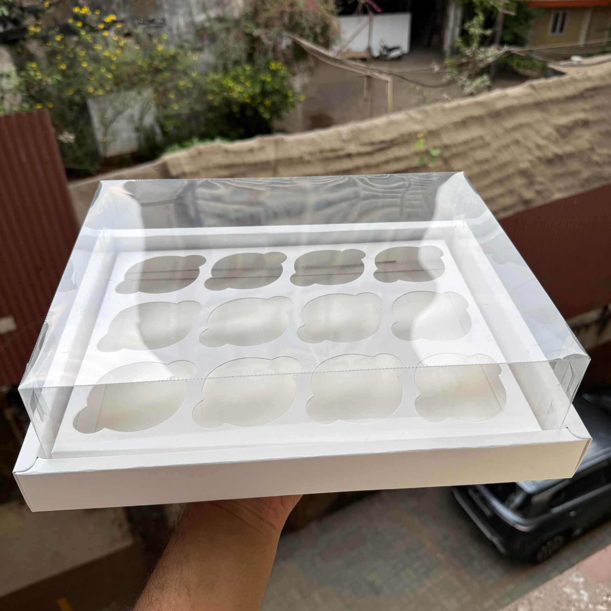 New Box suitable for cupcakes and can be used as hampers as well without the cavity. Multi purpose box